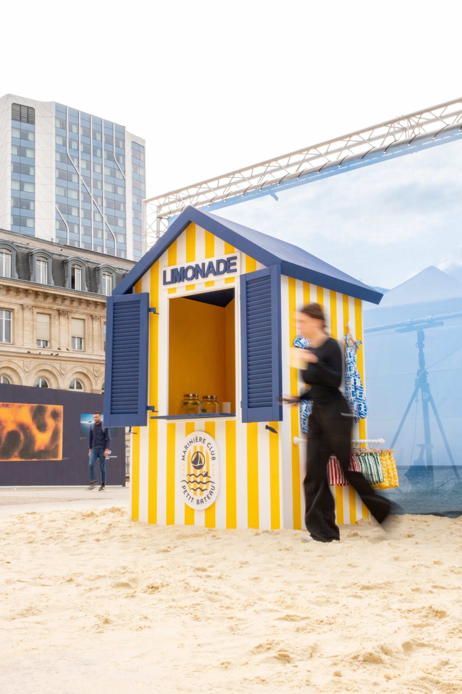 Nous avons construit de A à Z un décor complet de plage aux inspirations Wes Anderson : sable fin, parasols pastel, stand de limonade… Résultat : des centaines de personnes qui s’arrêtent dans la rue et 661k vues sur les réseaux.